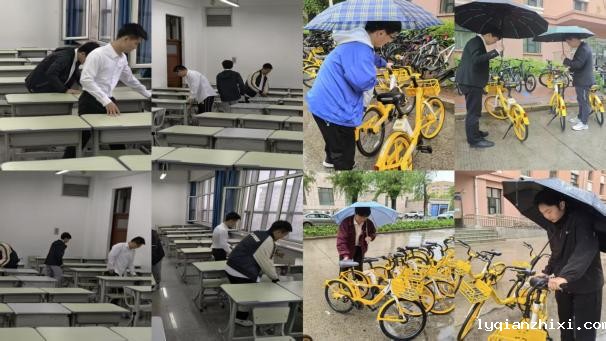校歌铭初心服务践使命。全体毕业生党员齐唱校歌《江畔朝阳》,在“厚德博学,强吾兴邦”的旋律中,牢记母校培养,坚定爱校荣校、报效祖国的信念。毕业生党员以志愿服务践行责任担当,党员们认真摆放教室中的座椅,在雨中摆放公寓门前杂乱的单车,用实际行动践行党员的先锋模范作用,将爱校之情转化为具体的服务奉献。